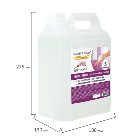 Мыло-пена для специальных диспенсеров 5 л ЗОЛОТОЙ ИДЕАЛ "Цветочное", 605908