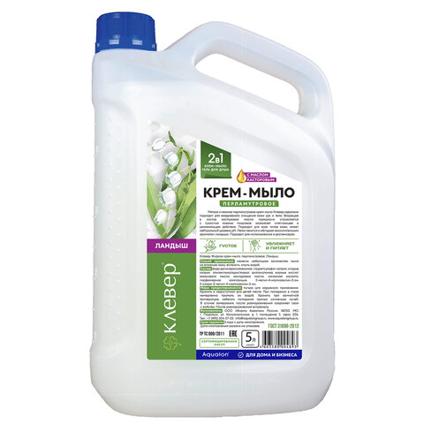 Мыло жидкое 5 л КЛЕВЕР "Ландыш", перламутровое, 104893