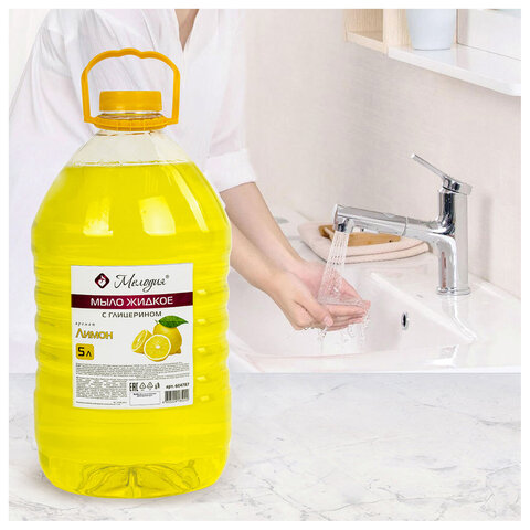 Мыло жидкое 5 л, МЕЛОДИЯ "Лимон", с глицерином, ПЭТ, 604787