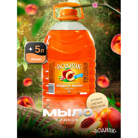 Мыло жидкое 5 л, ЗОДИАК "Персик", ПЭТ, 10285