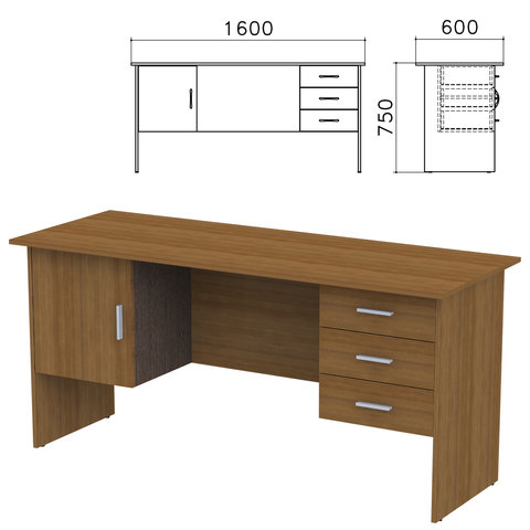 Стол письменный "Канц", 1600х600х750 мм, 2 тумбы, комбинированный, цвет орех пирамидальный, СК29.9