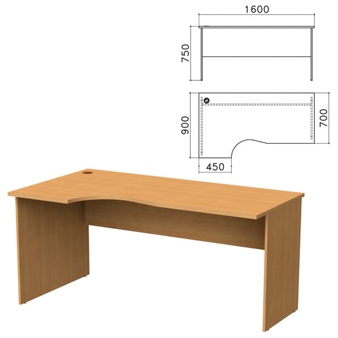 Стол письменный эргономичный "Монолит", 1600х900х750 мм, левый, цвет бук бавария, СМ7.1