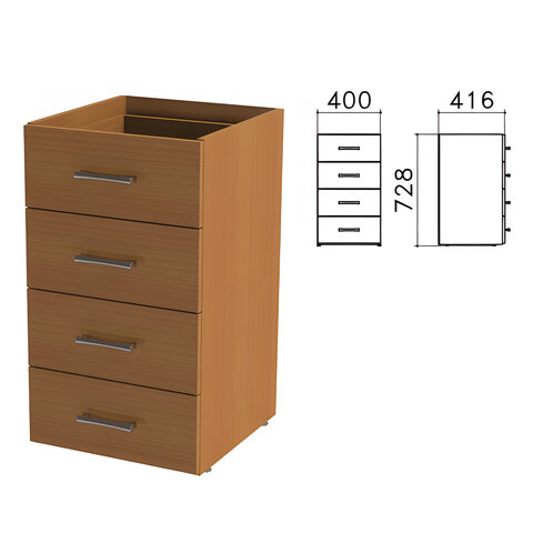 Тумба (каркас БЕЗ КРЫШКИ) приставная "Монолит", 400х416х728 мм, 4 ящика, орех гварнери, ТМ05.3