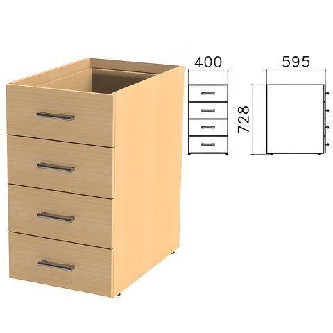 Тумба (каркас БЕЗ КРЫШКИ) приставная "Монолит", 400х595х728 мм, 4 ящика, бук бавария, ТМ06.1