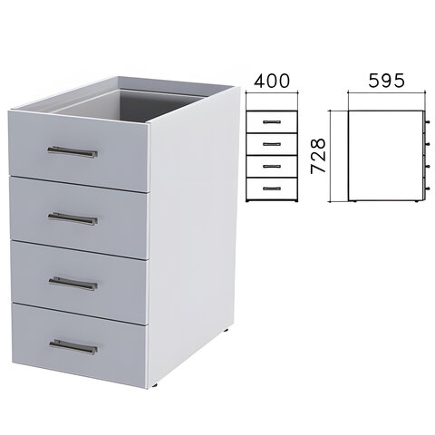 Тумба (каркас БЕЗ КРЫШКИ) приставная "Монолит", 400х595х728 мм, 4 ящика, серая, ТМ06.11