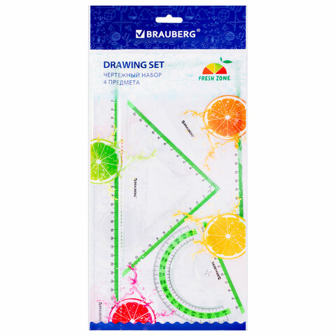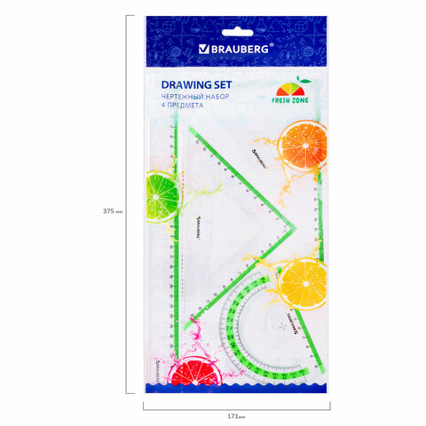 Набор чертежный BRAUBERG "FRESH ZONE" предназначен для выполнения чертежных и измерительных работ в школе и дома.