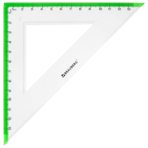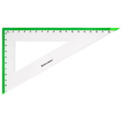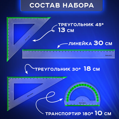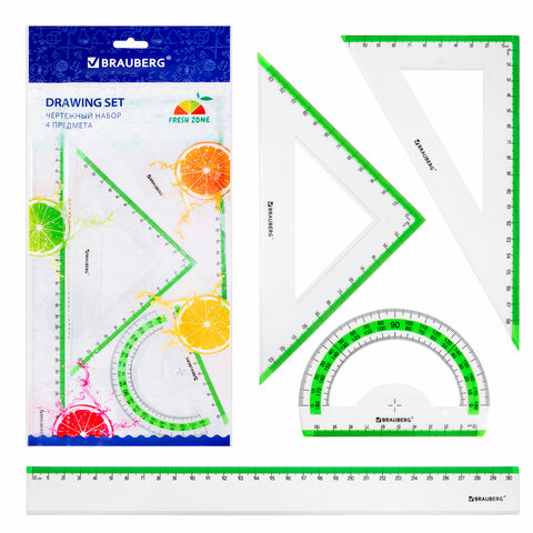Набор чертежный большой BRAUBERG "FRESH ZONE" (линейка 30 см, 2 треугольника, транспортир) с салатовой шкалой, 210764
