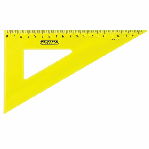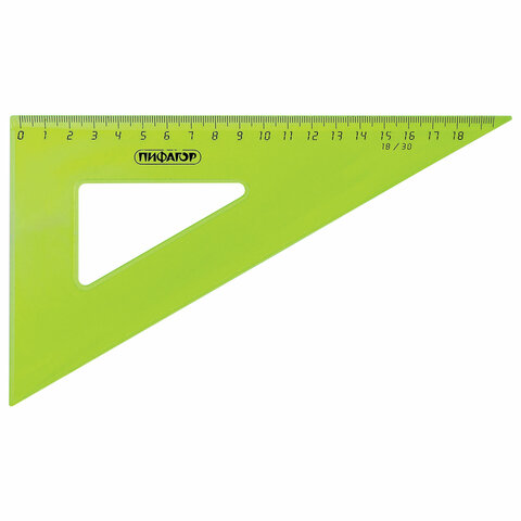 Набор чертежный большой ПИФАГОР (линейка 30 см, 2 треугольника, транспортир), прозрачный, неоновый, пакет, 210629