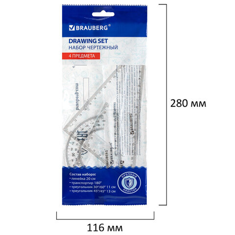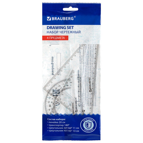 Набор чертежный геометрический BRAUBERG предназначен для выполнения чертежных работ.