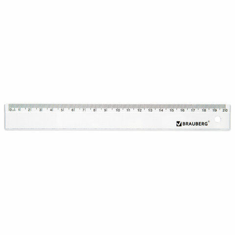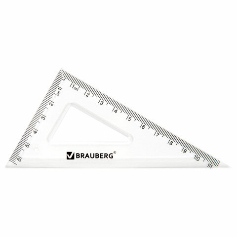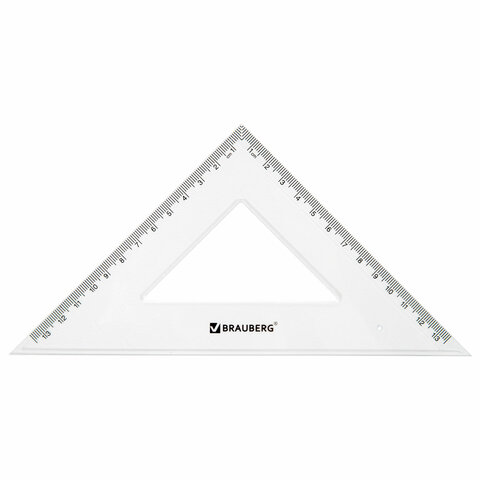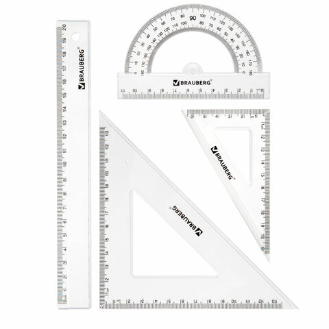 Набор чертежный BRAUBERG (линейка 20 см, 2 треугольника, транспортир), прозрачный, 210853