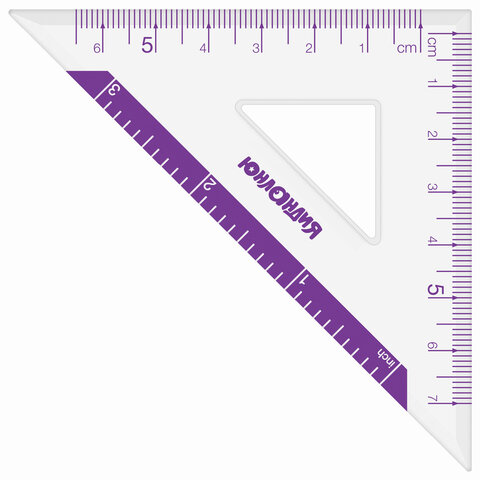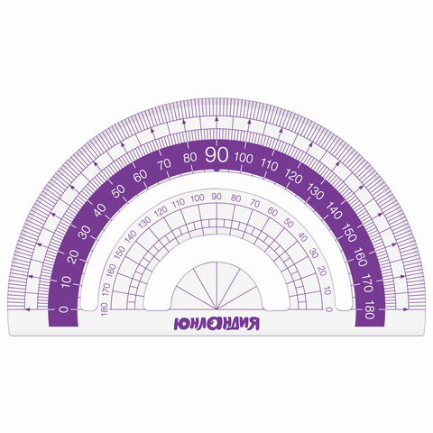 Набор чертежный малый ЮНЛАНДИЯ "ГЕОМЕТРИЯ" (линейка 15 см, 2 треугольника, транспортир), фиолетовая шкала, 210739