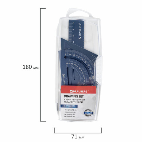 Набор чертежный BRAUBERG предназначен для выполнения чертежных и измерительных работ в школе и дома.