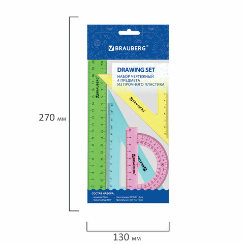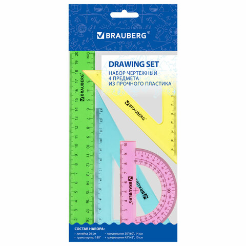 Набор чертежный геометрический BRAUBERG предназначен для выполнения чертежных работ.