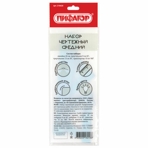 Набор чертежный геометрический ПИФАГОР предназначен для выполнения чертежных работ.