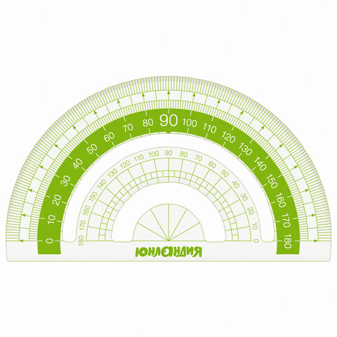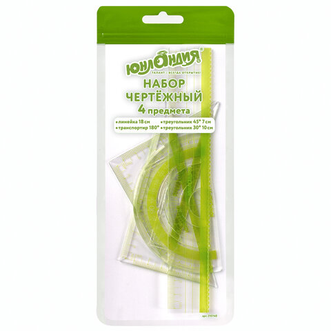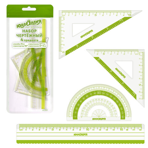 Набор чертежный ЮНЛАНДИЯ "ГЕОМЕТРИЯ" (линейка 18 см, 2 треугольника, транспортир), зеленая шкала, 210740