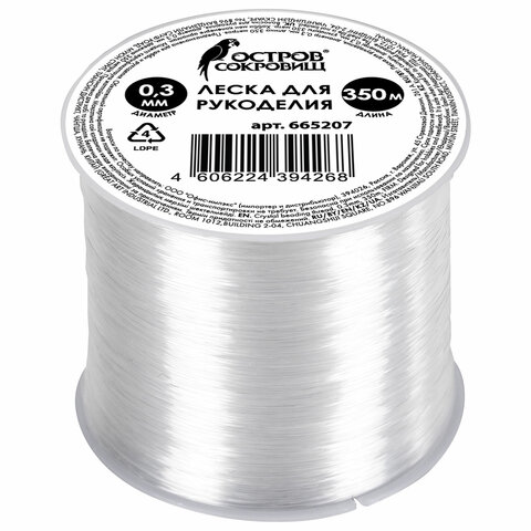 Леска для рукоделия, диаметр 0,3 мм, длина 350 м, прозрачная, ПРОЧНАЯ, ОСТРОВ СОКРОВИЩ, 665207