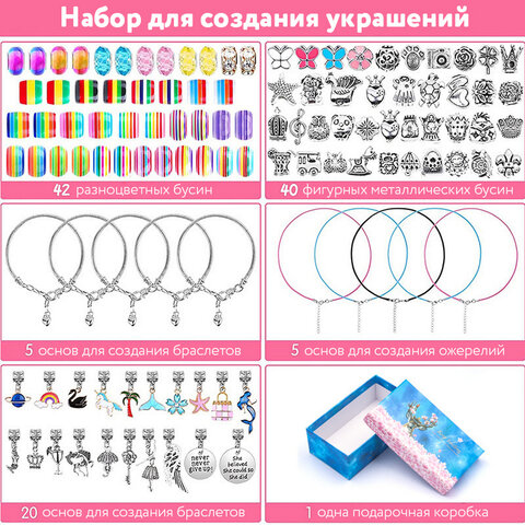 Набор для создания бижутерии и украшений 117 элементов МЕГА НАБОР, бусины, браслеты, подвески, BRAUBERG KIDS, 665293
