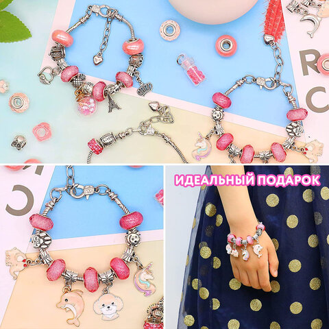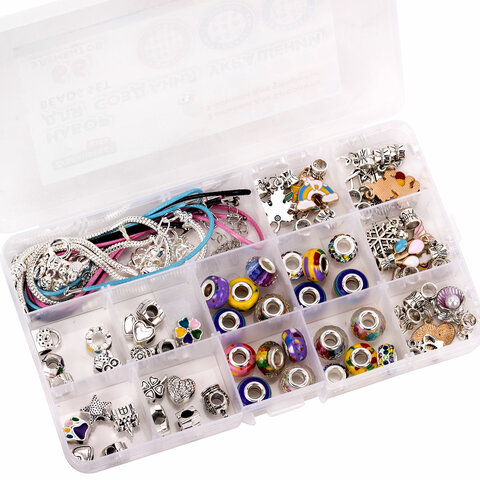 Набор для создания бижутерии и украшений 66 элементов Ассорти в пластиковом боксе, бусины, шармы, BRAUBERG KIDS, 665296