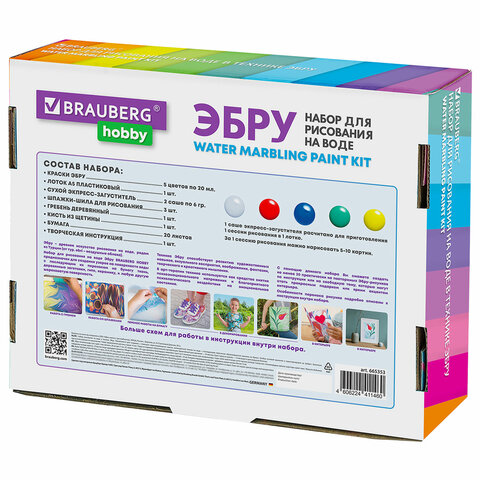 Набор для рисования на воде ЭБРУ BRAUBERG HOBBY предназначен для создания узоров на поверхности воды с последующим их переносом на бумагу и другую шероховатую поверхность. В наборе есть все необходимое для рисования. Для развития творческих способностей.