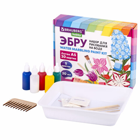 ЭБРУ набор для рисования на воде 5 цветов по 20 мл (20 картин), лоток А5, BRAUBERG HOBBY, 665353