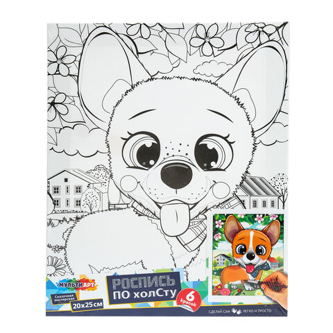 Картина детская по контуру, АССОРТИ 7 видов, 20х25 см, на подрамнике, акрил, кисти, МУЛЬТИ АРТ, 8084