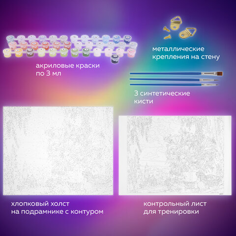Картины по номерам на холсте с подрамником размером 40х50 см с дизайнами по картинам российских художников – это отличный способ почувствовать себя художником и интересно провести время. Все необходимое для рисования – в наборе.