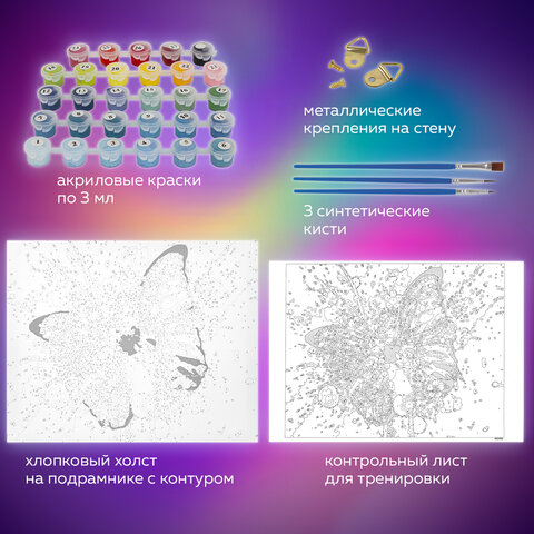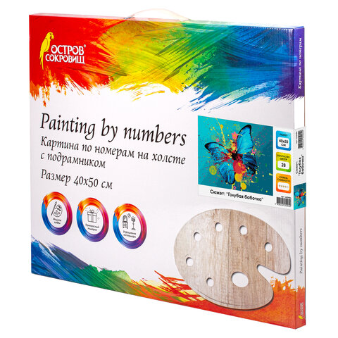Картина по номерам 40х50 см, ОСТРОВ СОКРОВИЩ "Голубая бабочка", на подрамнике, акриловые краски, 3 кисти, 662486