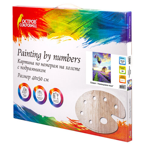 Картина по номерам 40х50 см, ОСТРОВ СОКРОВИЩ "Лавандовое поле", на подрамнике, акриловые краски, 3 кисти, 662459