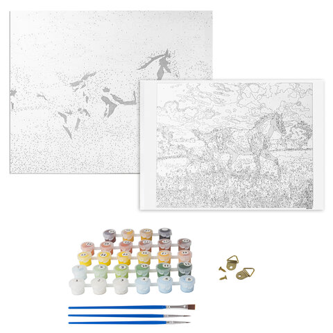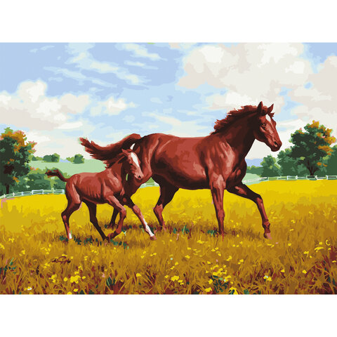 Картина по номерам 40х50 см, ОСТРОВ СОКРОВИЩ "Лошади на лугу", на подрамнике, акриловые краски, 3 кисти, 662464