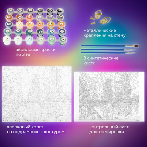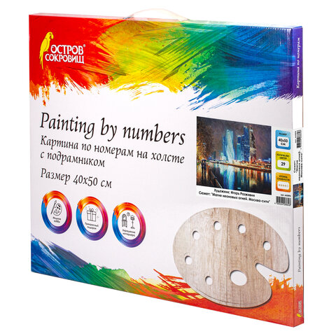 Картина по номерам 40х50 см ОСТРОВ СОКРОВИЩ "Магия неоновых огней. Москва-сити" на подрамнике, акрил, кисти, 662890