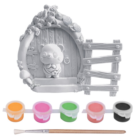 ПАННО ИЗ ГИПСА "СКАЗОЧНАЯ ДВЕРЦА", с красками и кистью для росписи, ассорти, BRAUBERG KIDS, 666013