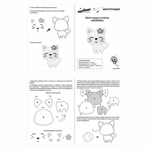 Набор для шитья игрушки из фетра "Котёнок", ЮНЛАНДИЯ, 664490