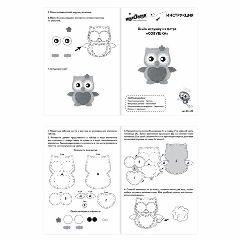 Набор для шитья игрушки из фетра "Совушка", ЮНЛАНДИЯ, 664493