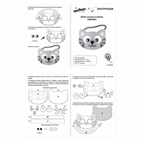Набор для шитья сумочки из фетра "Котик", ЮНЛАНДИЯ, 664496