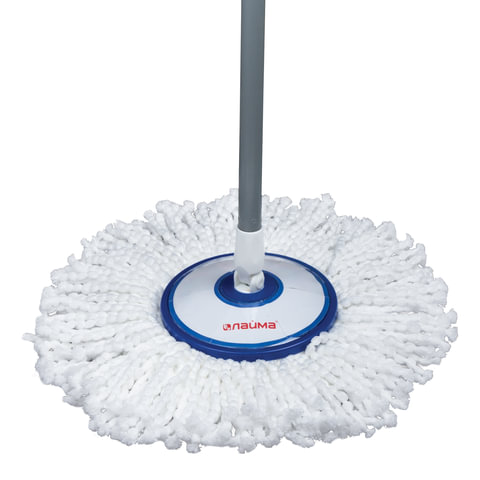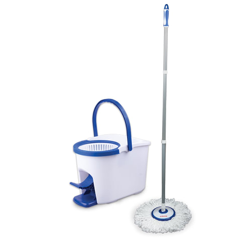 Швабра с отжимом и ведром 11л/5л, центрифуга, отжим педалью, круглая насадка липучка, бело-синий, LAIMA, 601459