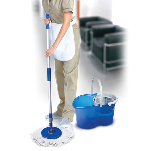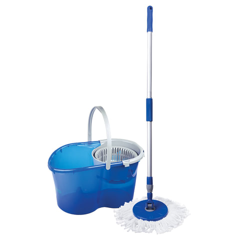 Швабра с отжимом и ведром 14л/5л, отжим центрифуга / рукоятка, 2 круглые насадки, крепление кольцо, синий, LAIMA, 601460