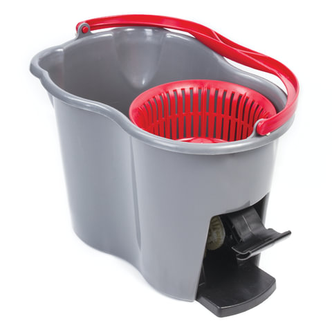 Швабра с отжимом и ведром 14л/7л, центрифуга отжим педалью, 2 круглые насадки, крепление кольцо, серо-красный, LAIMA, 603622