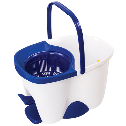 Швабра с отжимом и ведром 18 л / 8 л, центрифуга, отжим педалью, 2 флаундера/насадки круглый и прямоугольный, бело-синий, LAIMA, 603625