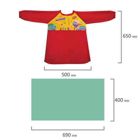 Набор для уроков труда ЮНЛАНДИЯ, клеенка ПВХ 40x69 см, фартук-накидка с рукавами, красный, 228356