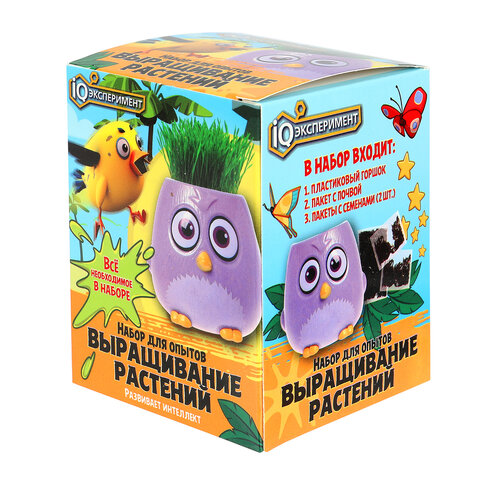 Набор для опытов "Пташки, выращиваем травку", фиолетовый горшочек, 5155390, EXG-02-AB