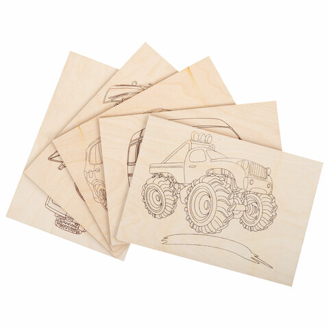 Заготовки деревянные для выжигания "Транспорт", 5 шт., 10 рисунков, 15х21 см, BRAUBERG HOBBY, 665307