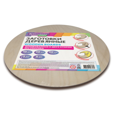 Заготовки для творчества деревянные, круглые, 5 шт., диаметр: 10-20-30 см, BRAUBERG HOBBY, 665314