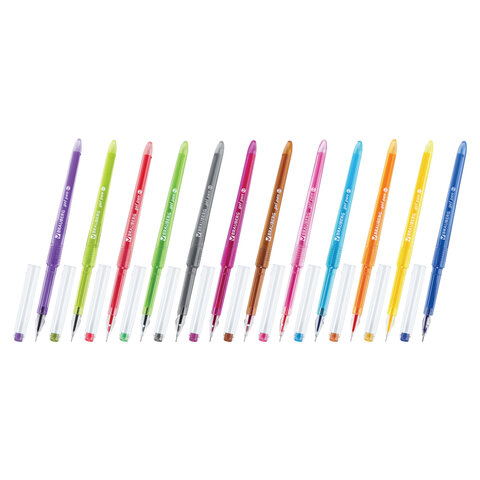 Ручки гелевые BRAUBERG DIAMOND, НАБОР 12 ЦВЕТОВ, узел 0,5 мм, линия письма 0,25 мм, 143377