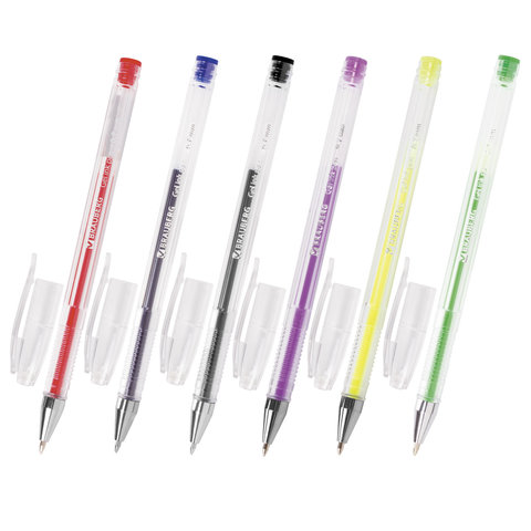 Ручки гелевые BRAUBERG "Jet", НАБОР 6 ЦВЕТОВ, узел 0,7 мм, линия письма 0,5 мм, 141037
