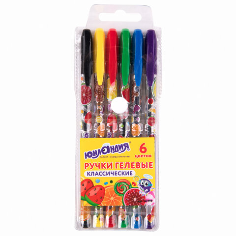 Ручки гелевые ЮНЛАНДИЯ, НАБОР 6 ЦВЕТОВ, корпус с печатью, узел 0,5 мм, линия письма 0,35 мм, 142799