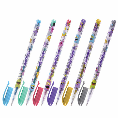 Ручки гелевые ЮНЛАНДИЯ, НАБОР 6 ЦВЕТОВ, МЕТАЛЛИК, с печатью, узел 0,7 мм, линия письма 0,5 мм, 142801