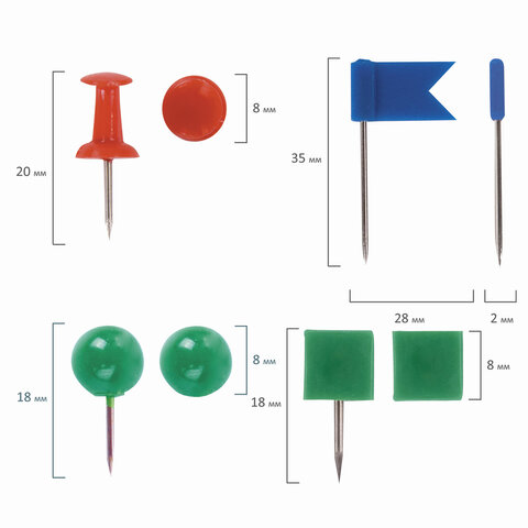 Набор BRAUBERG, силовые кнопки, 60 шт., шарики 60 шт., кубики 60 шт., флажки 60 шт., 223518