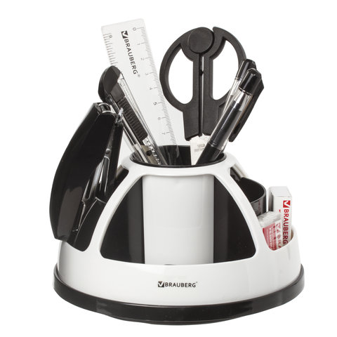 Канцелярский набор BRAUBERG "ULTRA", 10 предметов, вращающаяся конструкция, черно-белый, 236954