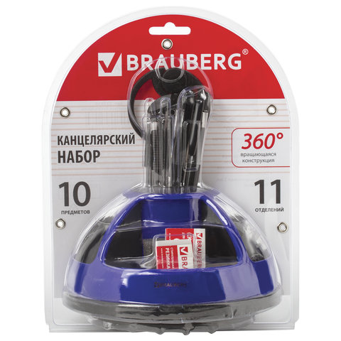 Канцелярский набор BRAUBERG "ULTRA", 10 предметов, вращающаяся конструкция, черно-синий, 231930