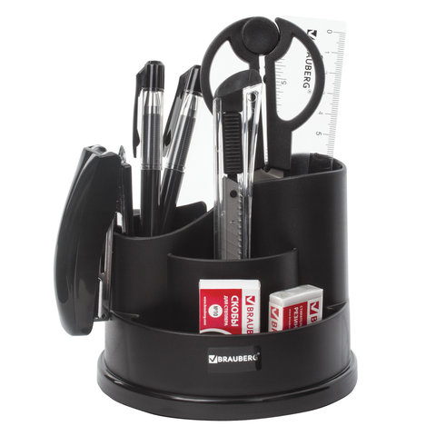 Канцелярский набор BRAUBERG "Рапсодия", 10 предметов, вращающаяся конструкция, черный, 236953